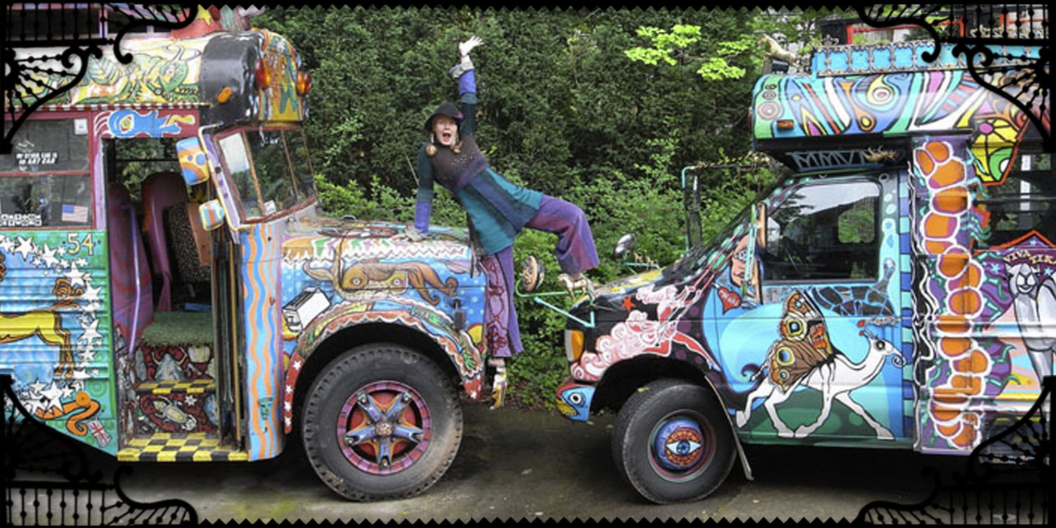 Welcome to my whimsical world of recycled sweaters, wacky art, tall tales, psychedelic school buses, and general creative mayhem. I hope you enjoy getting lost in my labyrinth of colors!